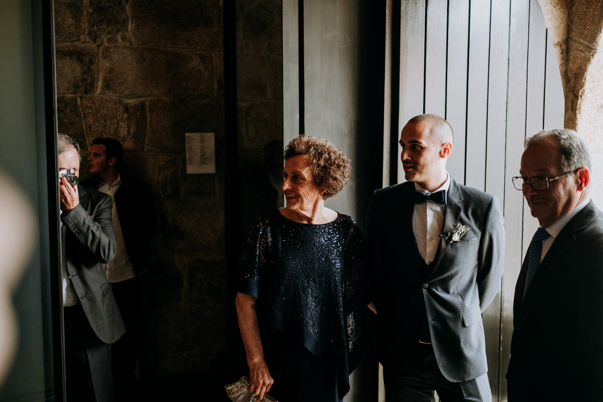 [EN] Do you still remember Barbara & João's engagement session? No? You can check it here. The things we remember from this session remained intact on the wedding day: they are really a couple of great authenticity. The day started a little grey and cloudy with the sun was hibernated behind the clouds. João made his preparation at home, in the midst of friends and family, while the bride booked a room at Feira Hostel & Suites. She was surrounded by her parents and bridesmaid, who helped to drove away the first signs of nervousness. Her father, a man with a certain stern look, said he would never cry. But as he led her through the church, he bursted into tears. It was a moment of great intensity. The ceremony followed with great normality, in a relaxed mood. The priest even broke the hierarchical rules of the church: he opened a dialogue with the guests and spoke very close to the married couple, as a sign of closeness. The party continued later at Quinta dos Bellos. Watch the video of the day at the bottom.