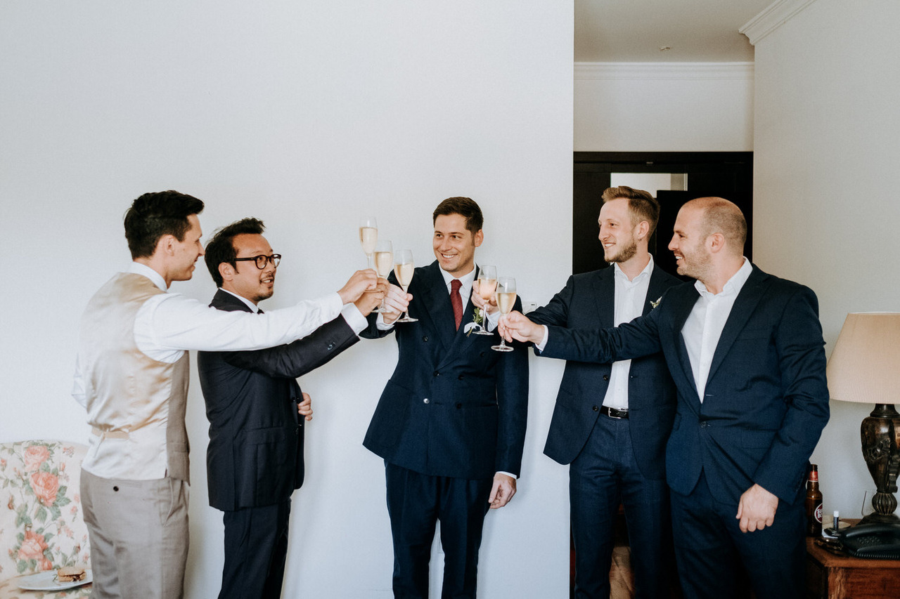 A Colombe é belga e o Gonçalo é português e residem atualmente na Bélgica. Como adoram a nossa gastronomia e cultura optaram por trazerem a família e os amigos mais próximos até à Casa das Pipas na Quinta do Portal para festejar este dia tão importante.